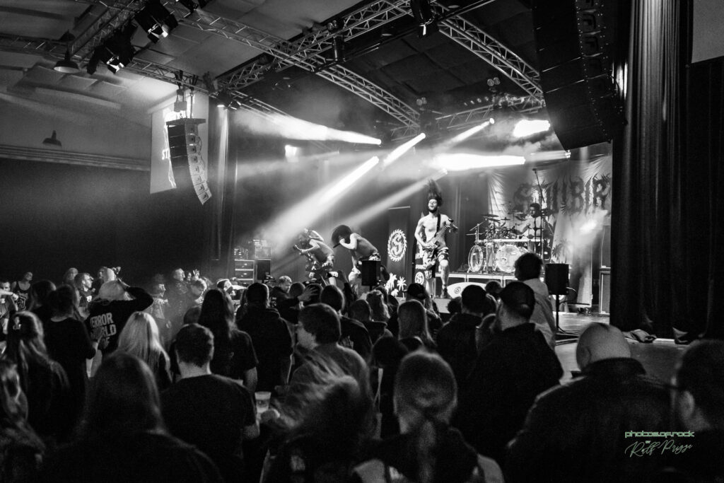 Ein Höhepunkt des Abends war der Auftritt von The Shiva Hypothesis, deren blackened Death Metal das Publikum in einen düsteren Klangkosmos entführte. Caffas Rain zollten mit ihrem Sound dem klassischen HM-2 Death Metal der 90er Jahre Tribut, während New World Depression mit Death ’n’ Roll-Anleihen und treibenden Grooves für Bewegung im Saal sorgten. Die technisch versierten Anchillys rundeten das Line-up mit einem brutalen, aber präzisen Set ab.