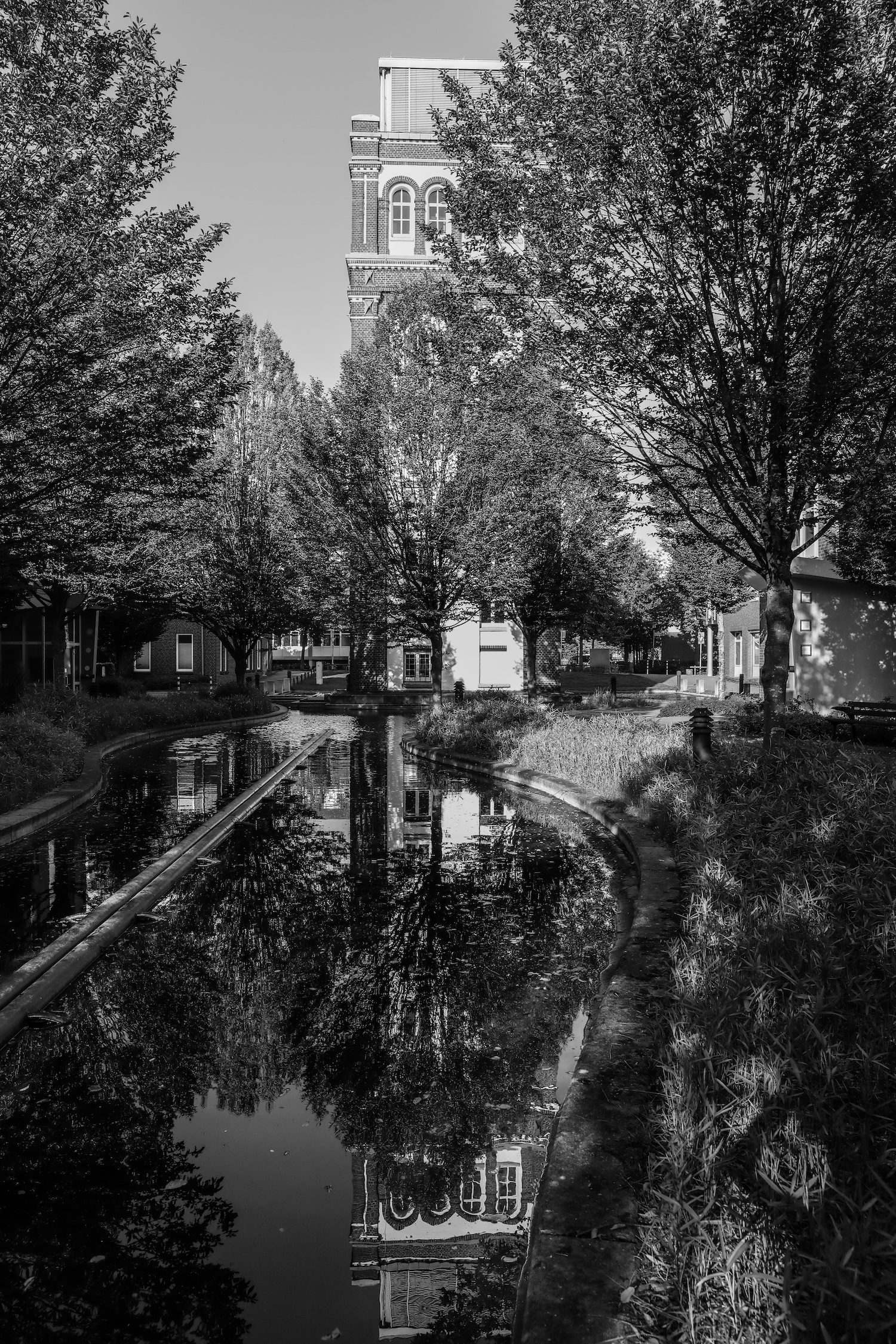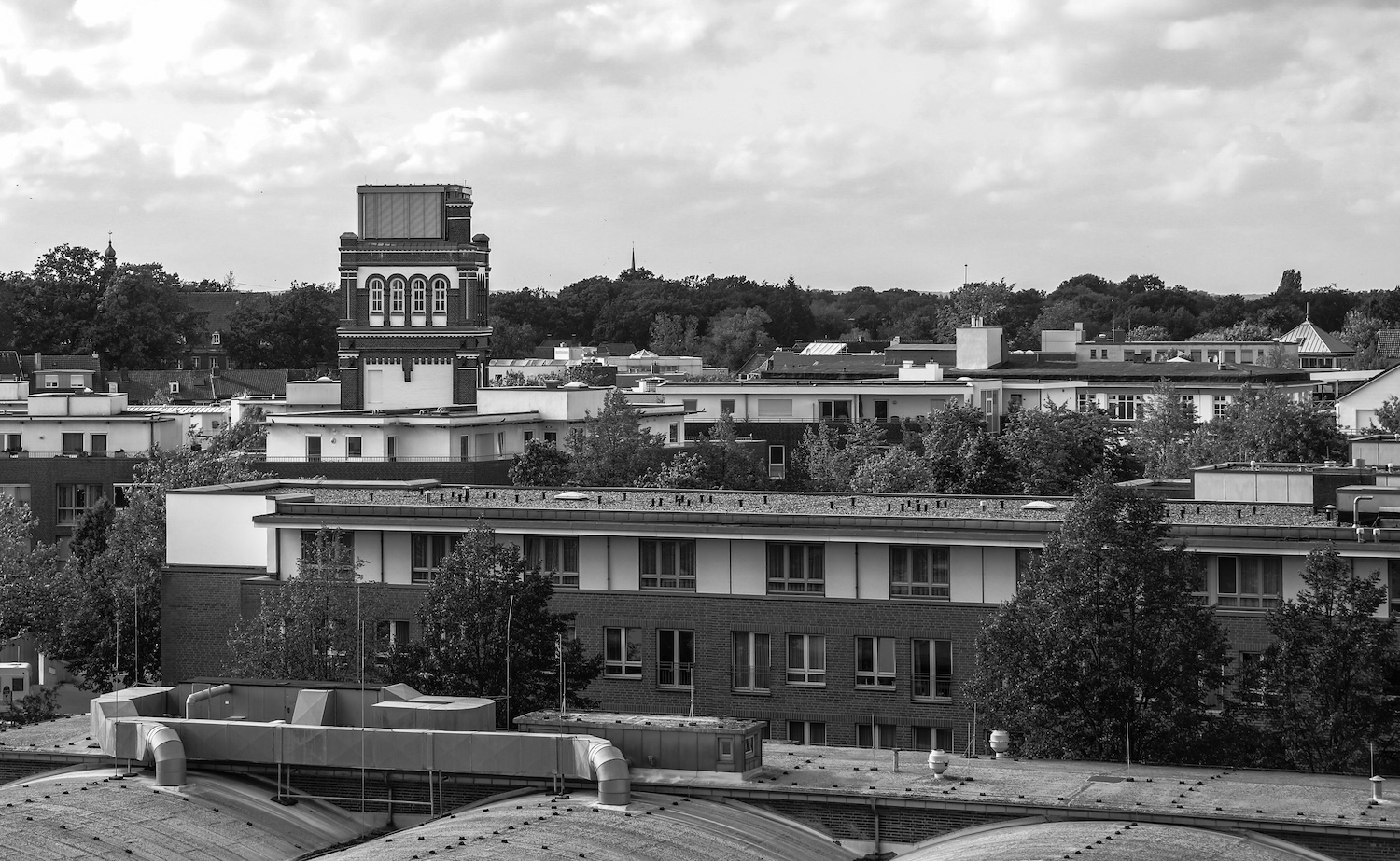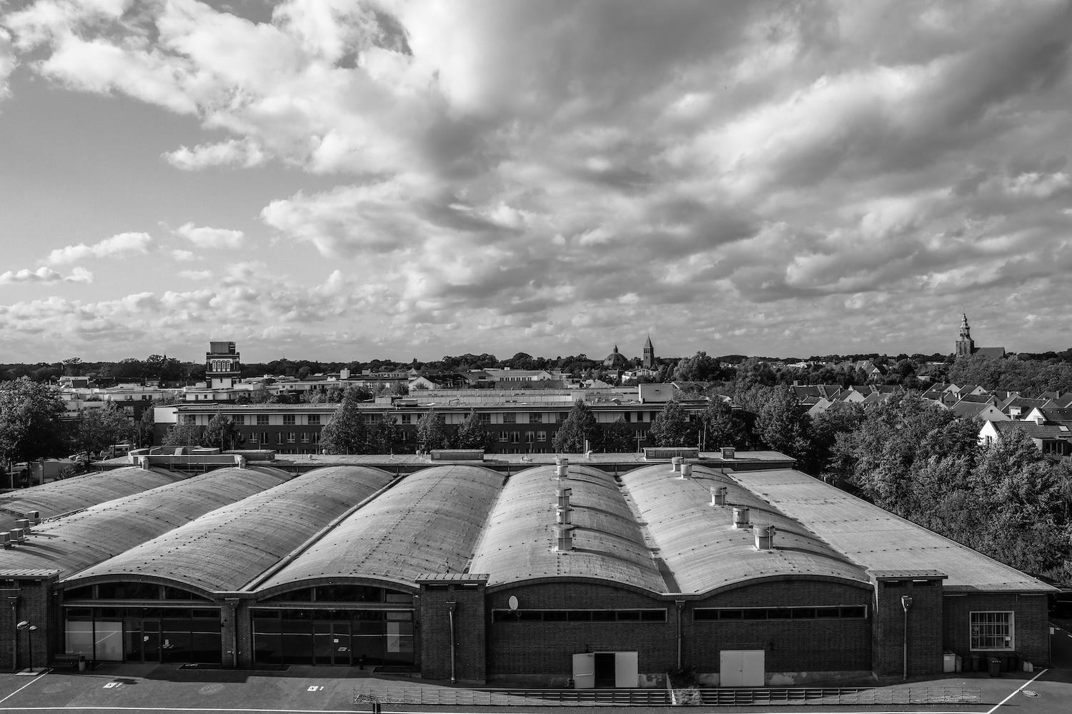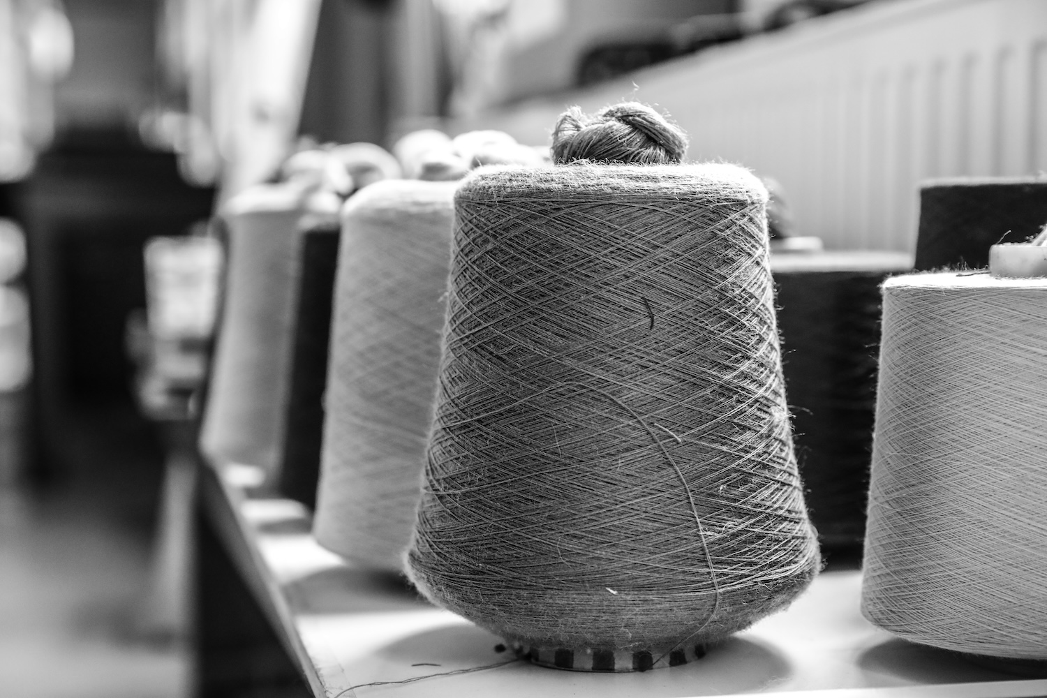 Der aus Nordhorn stammende Londoner Künstler Stefan Klimas hat einen auf über 100qm Wandfläche aufgezogenen Digitaldruck mit vergrößerten und kunstvoll ineinander geschobenen Fotografien aus der NINO-Produktion erstellt. Ein Blick auf dieses Werk lässt die enormen Ausmaße der einstigen Fabrikhallen mit ihren lang gezogenen Maschinenstraßen erahnen.